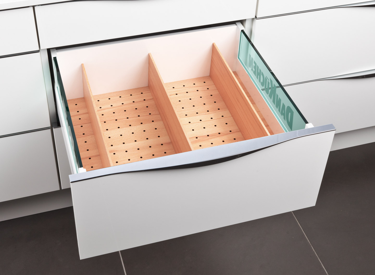 Für noch mehr Ästhetik und Individualität erhalten Sie bei DANKÜCHEN DESIGNAUSZÜGE MIT SEITENTEILEN AUS GLAS. Für Sie natürlich OHNE AUFPREIS!