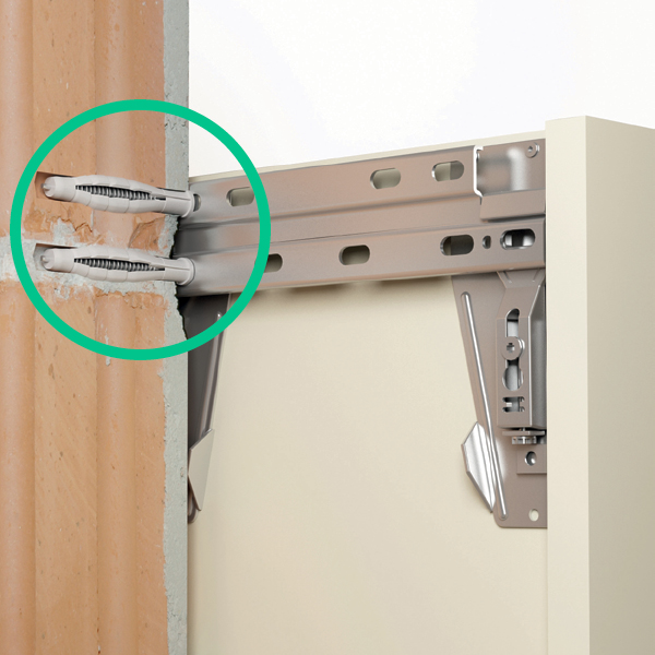 Dank DOPPELTER AUFHÄNGESCHIENE halten DANKÜCHEN Oberschränke einfach mehr aus. So können Sie in Ihren Oberschränken auch schwere Teller oder Töpfe verstauen.