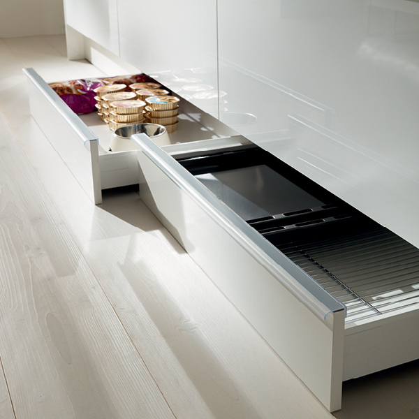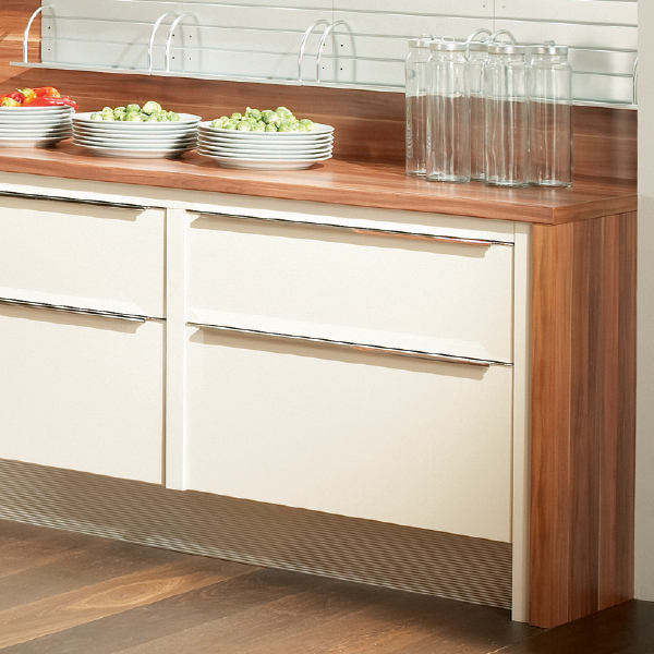 Ihre DAN-Küche verschenkt keinen Platz! Denn bei uns wird auch der Küchensockel als Stauraum genützt – mit SOCKELAUSZÜGEN FÜR 15% MEHR PLATZ in der Küche.