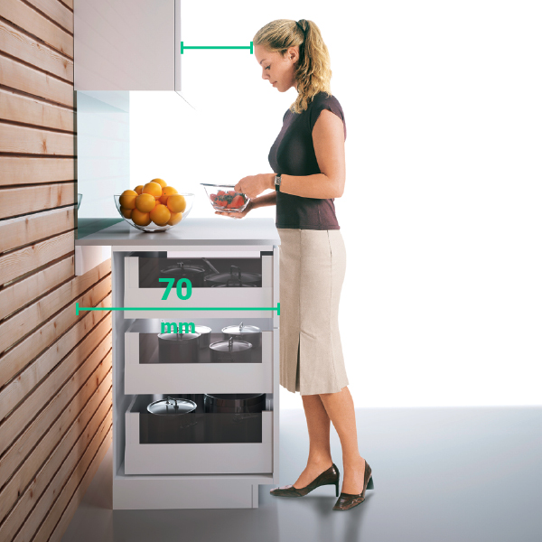 Bei DAN erhalten Sie eine 70 CM TIEFE ARBEITSPLATTE ZUM GLEICHEN PREIS WIE EINE 60 CM TIEFE! Dieser komfortable Mehrabstand bietet Ihnen zusätzliche Arbeitsfläche und noch mehr Bewegungsfreiheit.